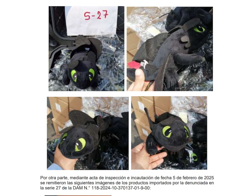 DreamWorks denunció el hecho el 11 de octubre de 2024, debido a una alerta aduanera emitida el 5 de octubre. En la Declaración Aduanera de Mercancías N° 118-2024-10-370137-01-9-00 se detectaron peluches con las mismas características del personaje: cuerpo negro, ojos verdes y cola con aletas rojas. Esto significa que los juguetes imitaban de forma casi idéntica la obra registrada en Estados Unidos bajo el certificado TXu 1-615-634.