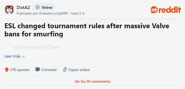 Recordemos que, cuando Valve banea a un jugador, este no podrá participar en ningún torneo que esté organizado por los desarrolladores de Dota 2. Esto sucedía hace varios años, cuando Valve era el principal organizador de torneos, lo que podía significar el fin de la carrera de los jugadores afectados. Sin embargo, ahora que la ESL se encarga de organizar la mayoría de los torneos, esto cambia y puede haber algún margen de excepciones.